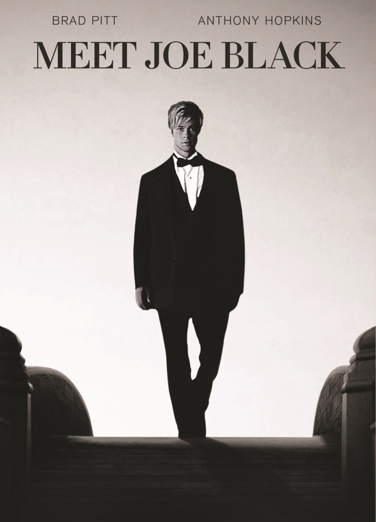 Directed by Martin Brest and starring the then biggest star in the world, Brad Pitt, along with Anthony Hopkins and Claire Forlani, Meet Joe Black was in spirit a loose adaptation of the 1934 movie Death Takes a Holiday, it depicts a William Parrish (Hopkins), a media mogul who is chosen by death (Pitt), to guide him through life as a mortal, in return William gets to stave off his own death for just a little longer.